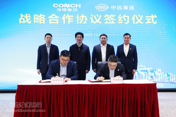 12月8日上午,海螺集團(tuán)與中遠(yuǎn)海運(yùn)簽署戰(zhàn)略合作協(xié)議并開展交流活動(dòng)。中遠(yuǎn)海運(yùn)黨組副書記、總經(jīng)理朱碧新,海螺集團(tuán)黨委書記、董事長(zhǎng)楊軍出席并見證簽約。中遠(yuǎn)海運(yùn)黨組成員、副總經(jīng)理林戟,海螺水泥黨委書記、總經(jīng)理李群峰分別代表雙方簽約。
