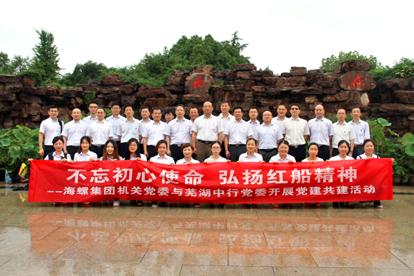 為深入學習貫徹習近平新時代中國特色社會主義思想和黨的十九大精神,慶祝中國共產黨成立97周年,2018年6月23日,海螺集團機關黨委與中國銀行蕪湖分行黨委班子成員及部分黨員代表攜手同行,赴中國共產黨的誕生地——浙江嘉興南湖開展黨建共建活動,追尋紅色足跡,重溫入黨誓詞,接受黨性教育,大力弘揚“紅船精神”,激發“紅色力量”。