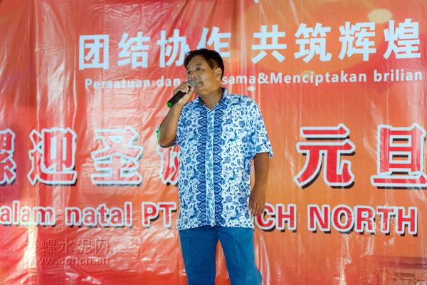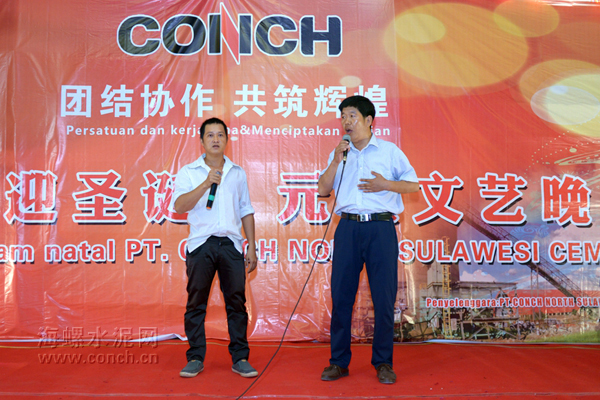 北蘇海螺總經理曾國華、PT.SULENCO BOHUSAMI CEMENT公司董事長卓瑞瑞分別為晚會致辭。他們表示,從2015年5月5日海螺水泥與PT.SULENCO BOHUSAMI CEMENT公司正式簽約并成立北蘇海螺水泥公司以來的一年半時間里,在各方的幫助與支持下,北蘇海螺全體干部員工只爭朝夕、奮力拼搏,項目已全面進入設備安裝階段,進展之快,不但創造了印尼國之最,也創造了中國海外投資之最。展望即將到來的一年,讓我們更加緊密的團結起來,共筑輝煌!曾總代表公司感謝各位朋友、嘉賓的到來,向中國籍、印尼籍員工致以節日的問候。