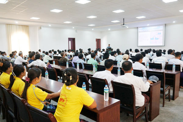 現(xiàn)場參觀結(jié)束后,在辦公樓三樓會(huì)議室,緬甸海螺向村民詳細(xì)介紹了緬甸海螺發(fā)展歷程、先進(jìn)生產(chǎn)工藝、環(huán)保技術(shù)裝備、公司發(fā)展帶來的經(jīng)濟(jì)社會(huì)效益及曼德勒項(xiàng)目規(guī)劃情況和未來預(yù)期。廣大村民聽取了介紹,并發(fā)表感言,一致認(rèn)為緬甸海螺公司技術(shù)先進(jìn),為第一次看到這樣一個(gè)現(xiàn)代化和花園式水泥廠感到高興,非常滿意此次參觀之行,并表示要大力支持曼德勒項(xiàng)目建設(shè)。