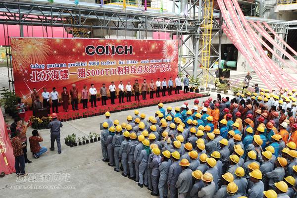 2018年10月12日上午,印度尼西亞北蘇海螺水泥有限公司窯廣場,艷陽高照,彩旗飄揚。櫛風沐雨逾三載,砥礪前行譜新篇,北蘇海螺終于迎來了期待已久、滿懷喜悅的時刻——項目一期日產5000噸熟料生產線正式點火投產!