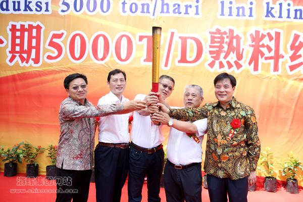 9時28分,點火儀式在窯廣場正式開始。海螺水泥副總經理李曉波、湖南區域主任何廣元、印尼區域副主任俞越、安全生產環保部常務副部長章嗣福,合作方和建設施工單位負責人,以及調試專家組成員、幫扶人員、各參建單位代表及北蘇海螺全體員工共500余人參加了點火儀式。