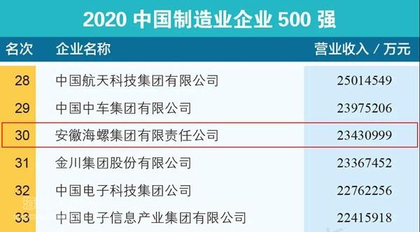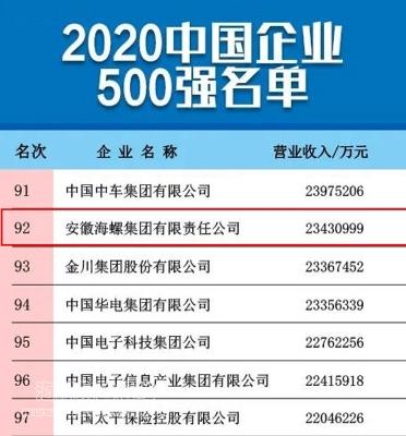 海螺集團(tuán)連續(xù)16年入圍中國企業(yè)500強(qiáng),榮列2020中國企業(yè)500強(qiáng)第92位,較2019年上升了13位,首次邁進(jìn)前100強(qiáng),也終結(jié)了安徽省多年無企業(yè)進(jìn)入前100位的歷史;同時(shí),榮列2020中國制造業(yè)企業(yè)500強(qiáng)第30位,比2019年上升8位;榮列2020中國跨國公司100大第96位,比2019年上升2位。