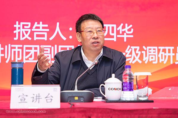 按照省委統一部署,12月23日上午,學習貫徹黨的十九屆六中全會精神“舉旗幟·送理論”省級示范性宣講報告會在海螺集團公司舉行。省級宣講團成員、省委宣講團副團長、一級調研員年四華作宣講報告。集團公司領導任勇、齊生立、王建超、吳小明、丁鋒等出席報告會。